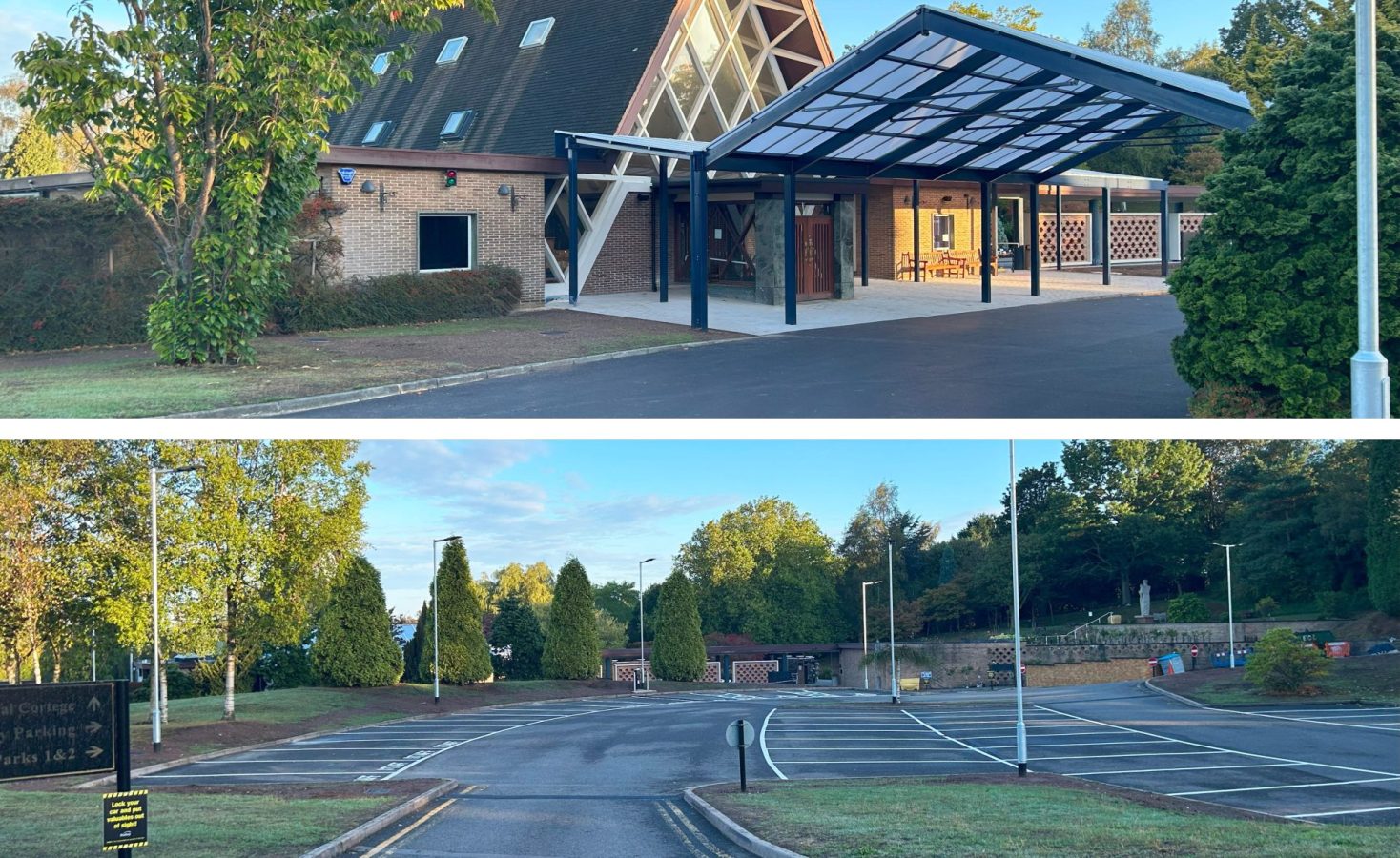 Works carried out include internal and external decoration, essential electrical rewiring and mechanical installations, and a new sound system and fire alarm. External improvements included drainage works, alterations to the general layout, provision of public toilets, resurfaced outdoor areas with a ramp to the main chapel, and the installation of an EV charging point and lighting in the main car park.